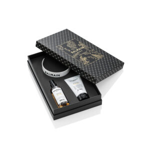 Komplektis sisalduvad niisutav soengukreem ja tekstureeriv soolasprei valmistavad juuksed ette täiuslikuks soenguks – kreem annab siledust ja pehmust, samas kui soolasprei lisab loomulikku volüümi, tekstuuri ja salongitasemel viimistluse. Soengu saad lõpetada ikoonilise Balmain Hair Legacy peavõruga, mis lisab välimusele elegantsi ja viimistletust.