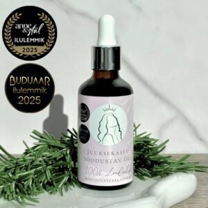 Rosmariiniõli on tuntud oma võime poolest parandada vereringet peanahas. See suurendab hapniku ja toitainete voolu juuksefolliikulitesse, mis omakorda stimuleerib juuksekasvu. Lisaks omab õli põletikuvastaseid omadusi, mis aitavad rahustada ärritunud ja põletikulist peanahka, vähendada kõõma ning hoida peanahka puhtana, mis omakorda loob soodsa keskkonna juuste kasvuks. - Lavendliõli