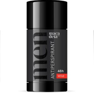 Sildid: 48h kaitse, 75 ml deodorant, deodorant meestele, higistamisvastane deodorant, igapäevane hooldus, intensiivne lõhn, kehahooldus meestele, long lasting freshness, looduslik kosmeetika, macadeia men, meeste antiperspirant, men care, strong protection, vegan kosmeetika, wild antiperspirant