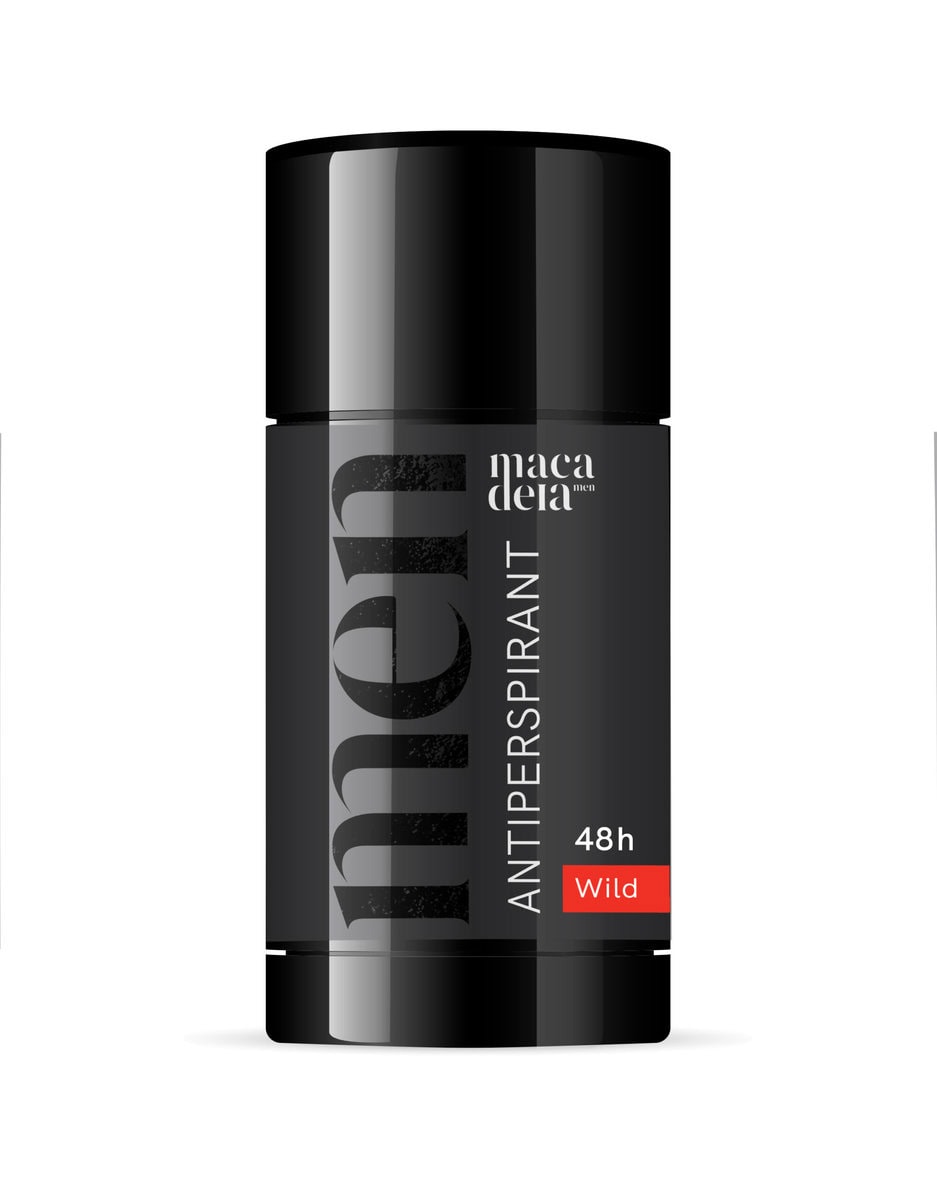 Sildid: 48h kaitse, 75 ml deodorant, deodorant meestele, higistamisvastane deodorant, igapäevane hooldus, intensiivne lõhn, kehahooldus meestele, long lasting freshness, looduslik kosmeetika, macadeia men, meeste antiperspirant, men care, strong protection, vegan kosmeetika, wild antiperspirant