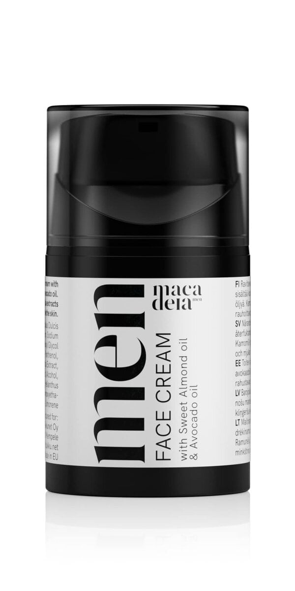 Sildid: 50 ml näokreem, face cream, looduslik kosmeetika, macadeia men, maskuliinne nahahooldus, meeste näohooldus, meeste näokreem, men skincare, näohooldus meestele, näokreem 50 ml, näokreem macadeia, niisutav näokreem, õrn kreem, päevakreem meestele, vegan kosmeetika