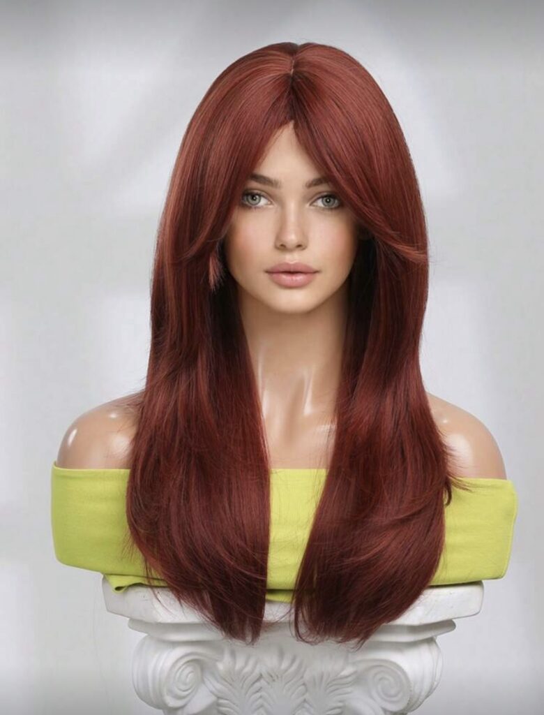 37,80 € Lisa korviToo oma välimusse julget karakterit ja sära! See 45 cm pikkune burgundipunane parukas on ideaalne neile, kes armastavad trendikat ja naiselikku välimust. Lõike inspiratsiooniks on „butterfly haircut“ – mahukas, kergelt kihtidena langev soeng, mis raamib nägu ja lisab volüümi.